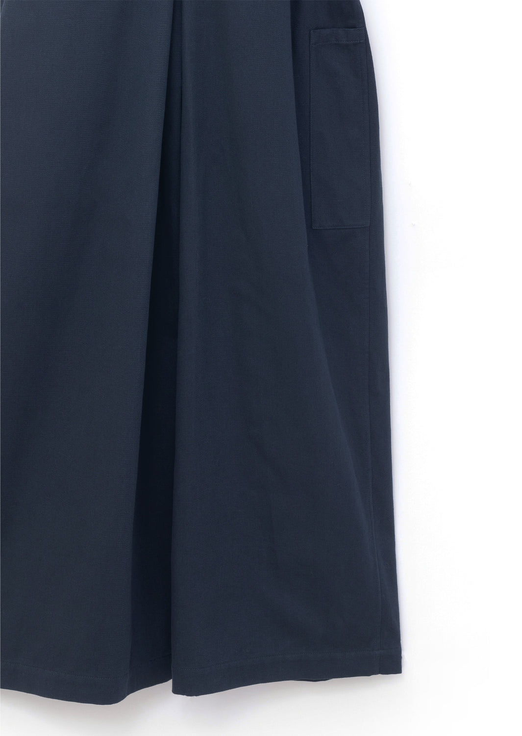 Wide-cut trouser legs; a utility pocket