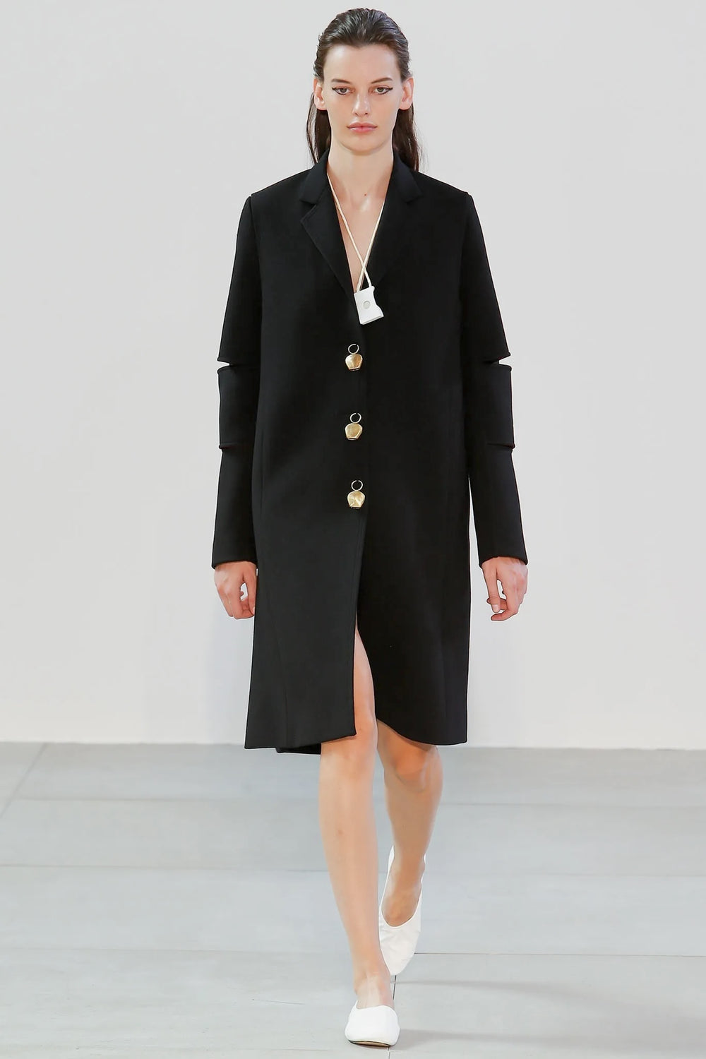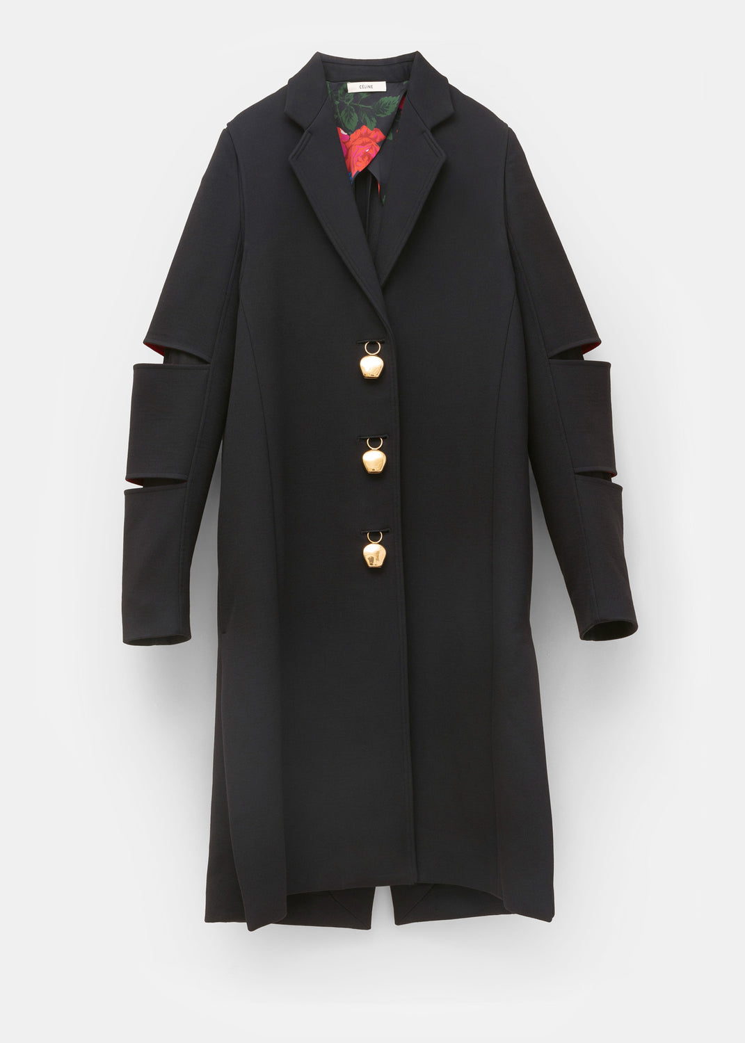 Item type Coat Size FR36 / S Accession CEL100180 Design house Celine Designer Phoebe Philo (British, 1973–) Collection Spring/Summer 2015 Material Stretch wool, satin, silk georgette, brass Place of origin Portugal