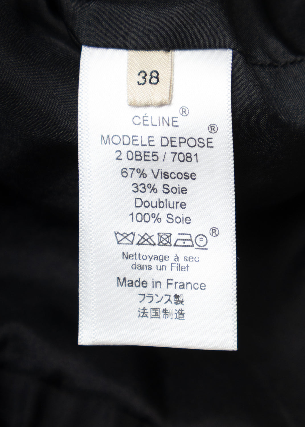 Material Viscose silk twill, silk habotai, sequins, beads Composition 67% Viscose, 33% Silk Handle Soft, fluid Weight Midweight Transparency No Stretch No Sheen Yes Lining Silk habotai Composition 100% Silk InscriptionsLabel marked "CÉLINE"