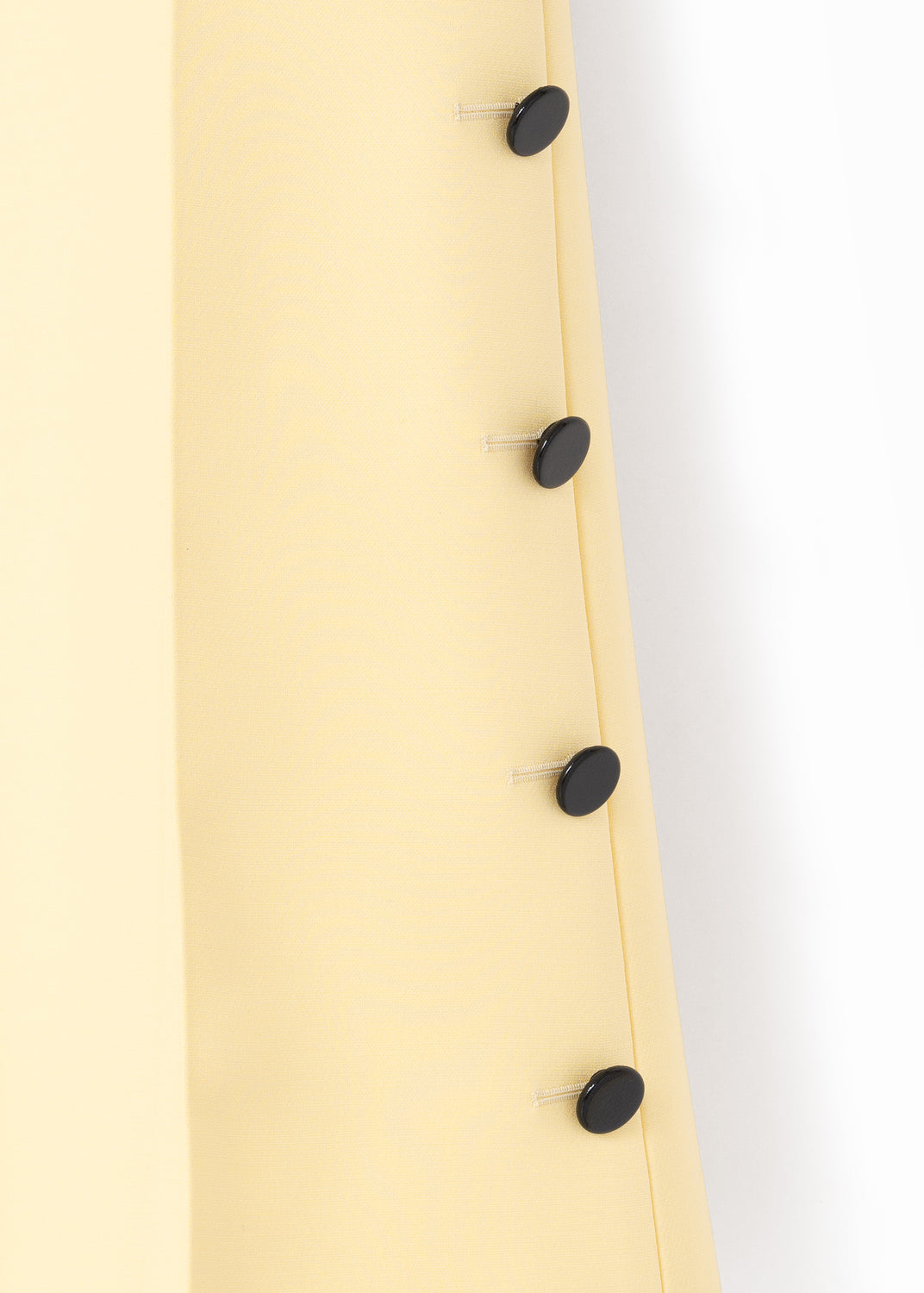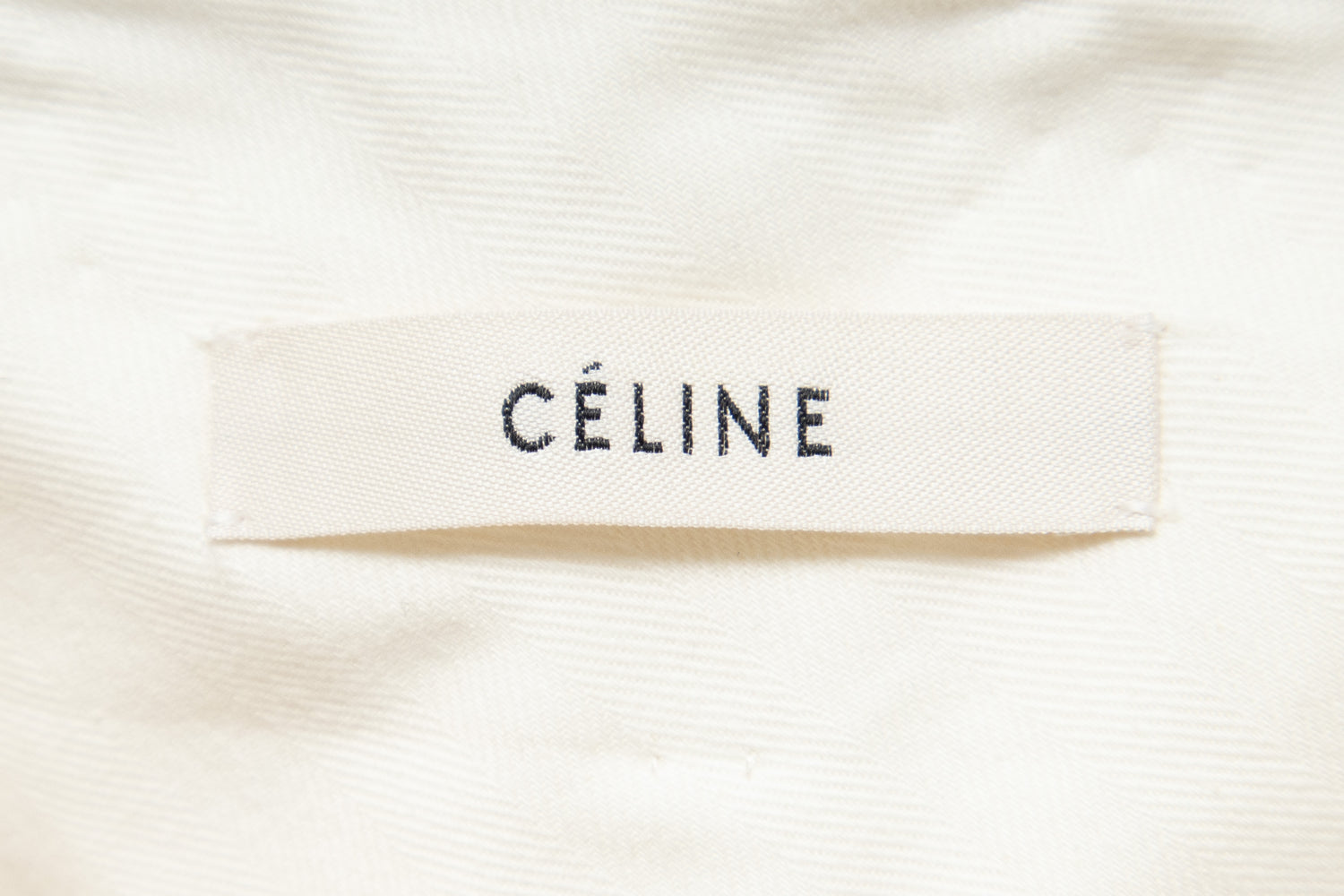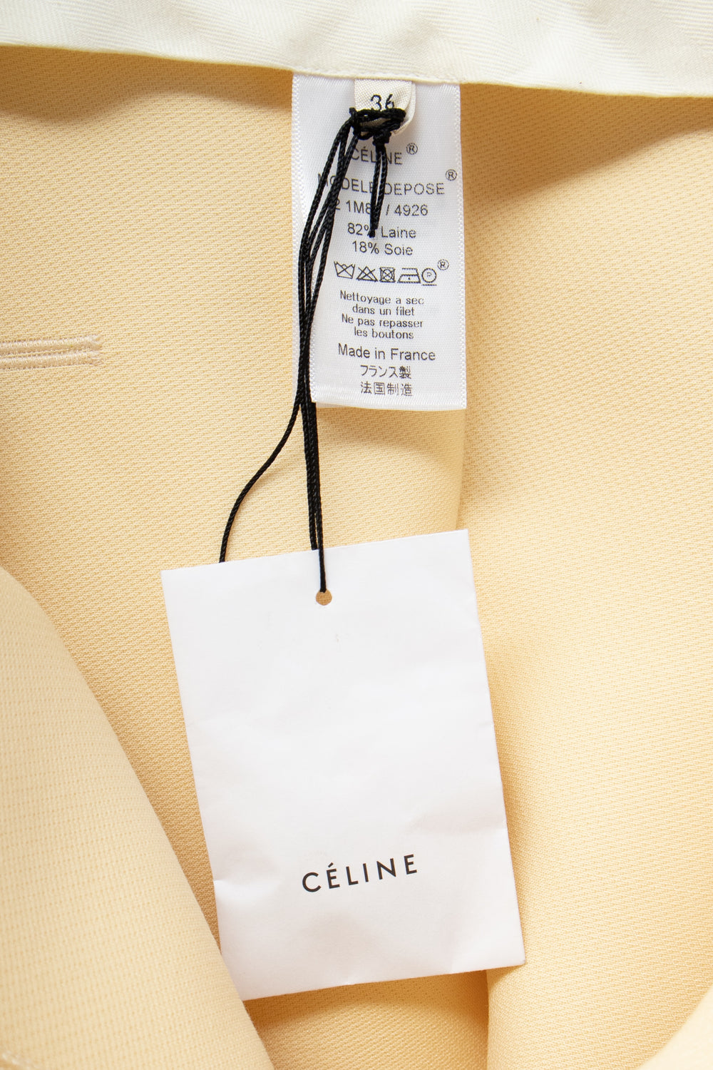Material Wool-silk crepe Composition 82% Wool, 12% Silk Handle Dry, compact, weighty Weight Midweight Transparency No Stretch No Sheen No Lining Herringbone-weave cotton lining Composition 100% Cotton InscriptionsLabel marked "CÉLINE"