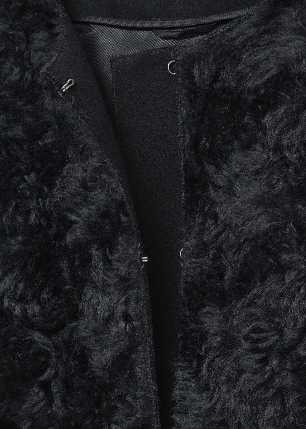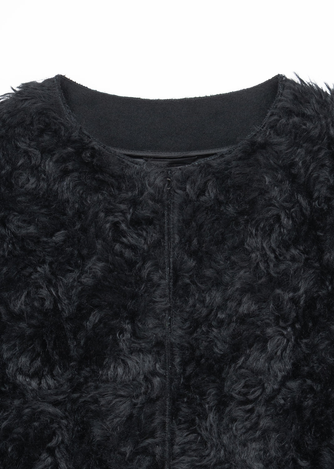 Round collar; curly mohair front