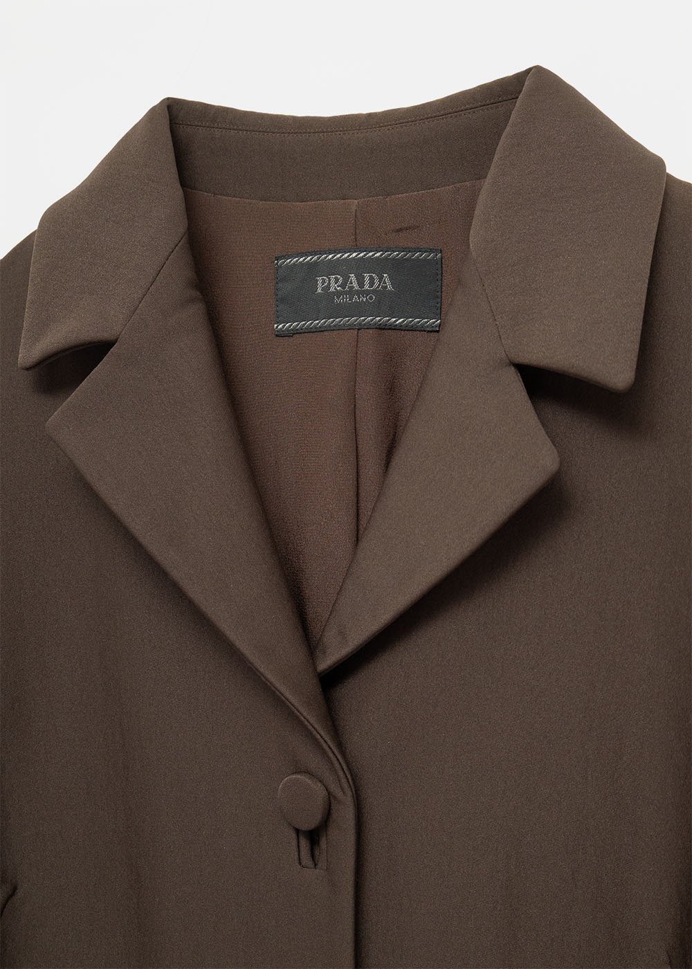 Material Technical blend Composition 70% Nylon, 24% Rayon, 6% Rubber Handle Smooth, flat, weighty Weight Midweight Transparency No Stretch No Sheen No Lining Technical crepe lining Composition 100% Polyester InscriptionsLabel marked "PRADA Milano"
