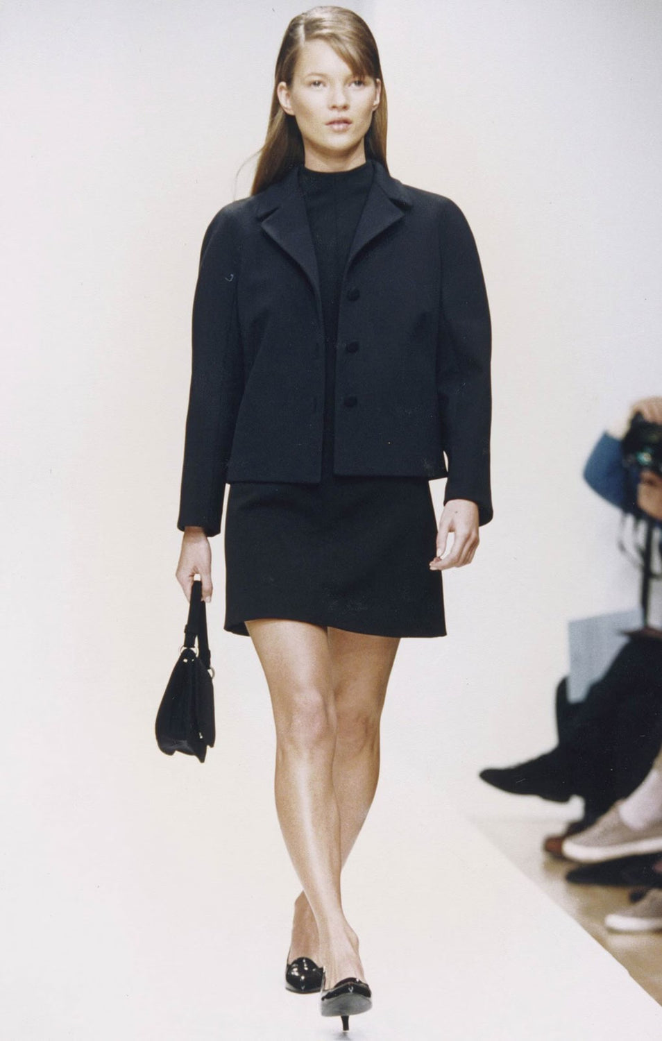 Model Kate Moss wears a black version of the jacket for the Prada Fall/Winter 1995 womenswear show in Milan. Video via Prada.com