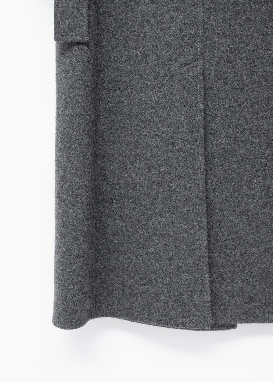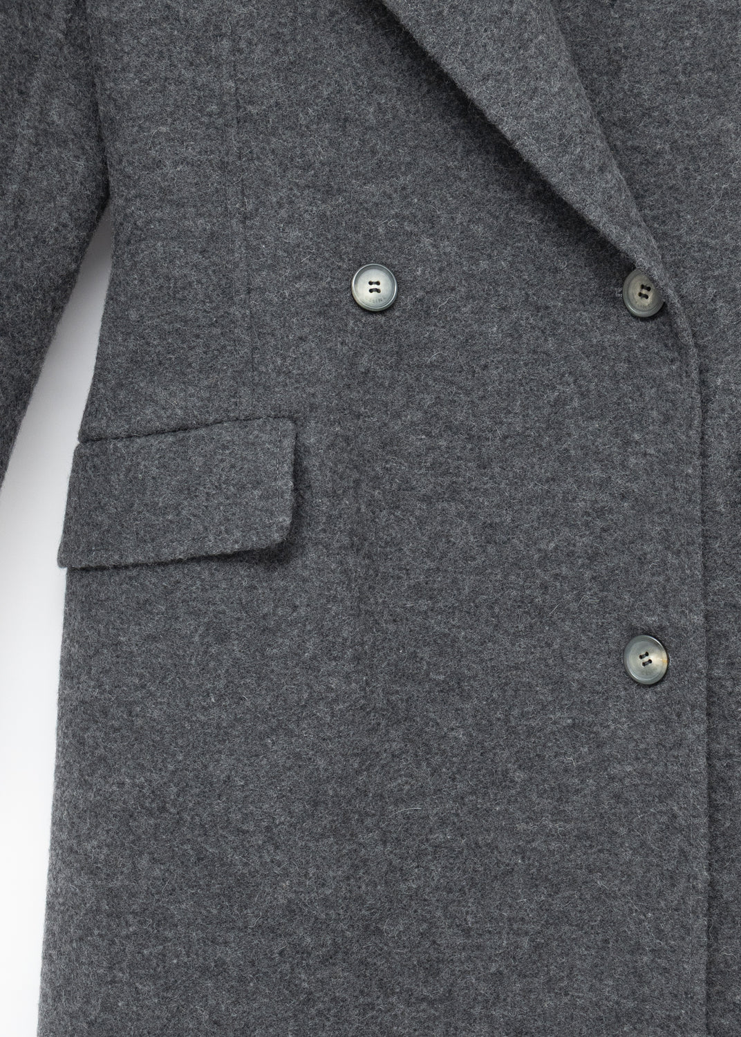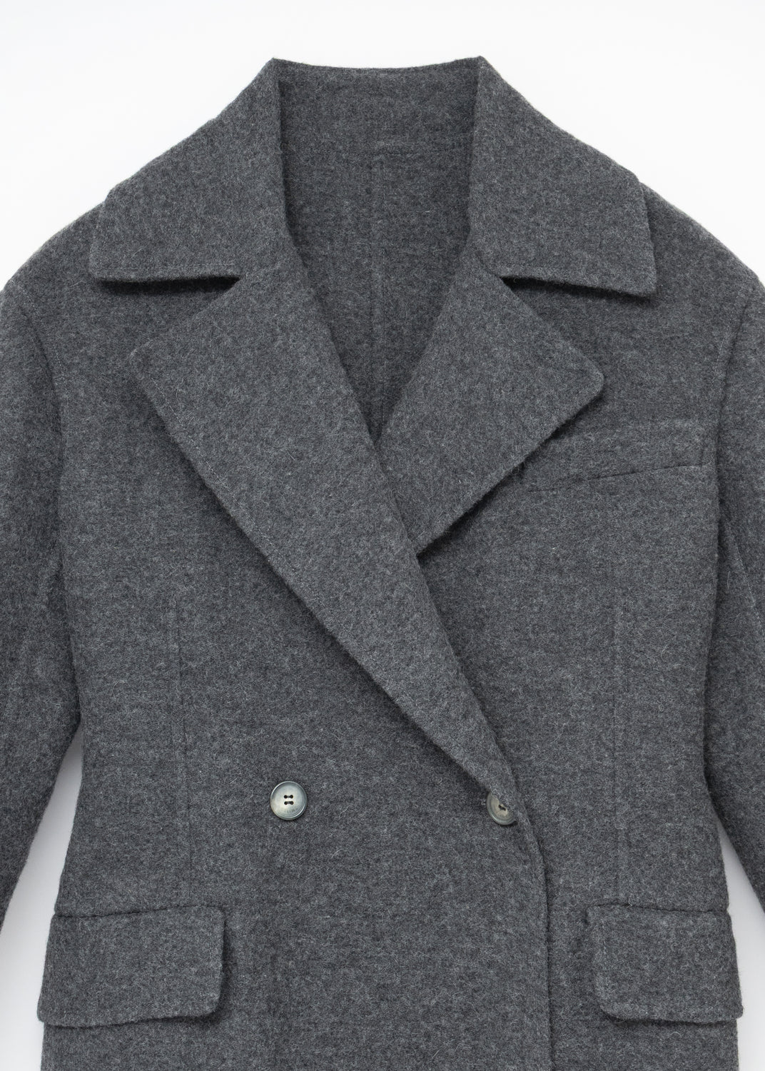 Material Double-face felted wool Composition 92% Wool, 8% Polyamide Handle Soft, full, textured, weighty Weight Heavyweight Transparency No Stretch No Sheen No Sleeve lining Viscose lining Composition 100% Viscose InscriptionsLabel with size indication