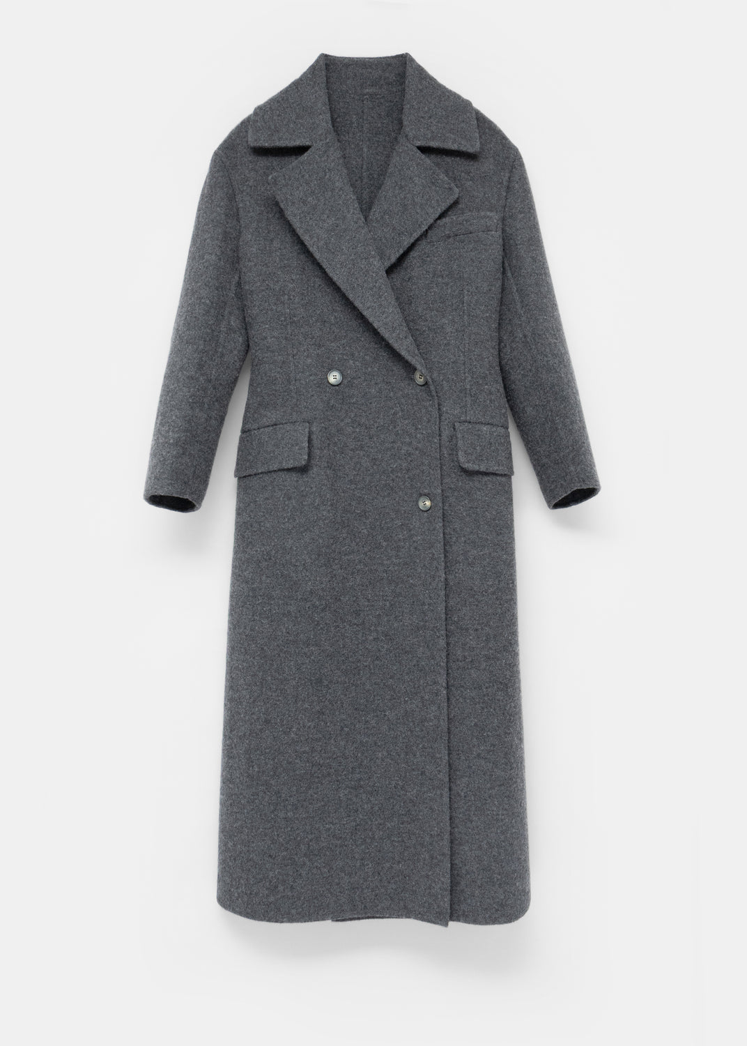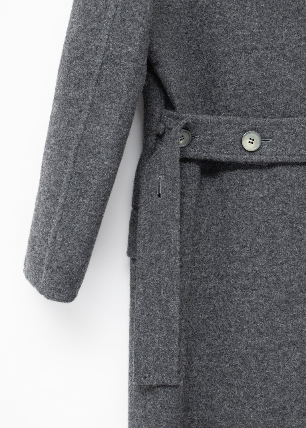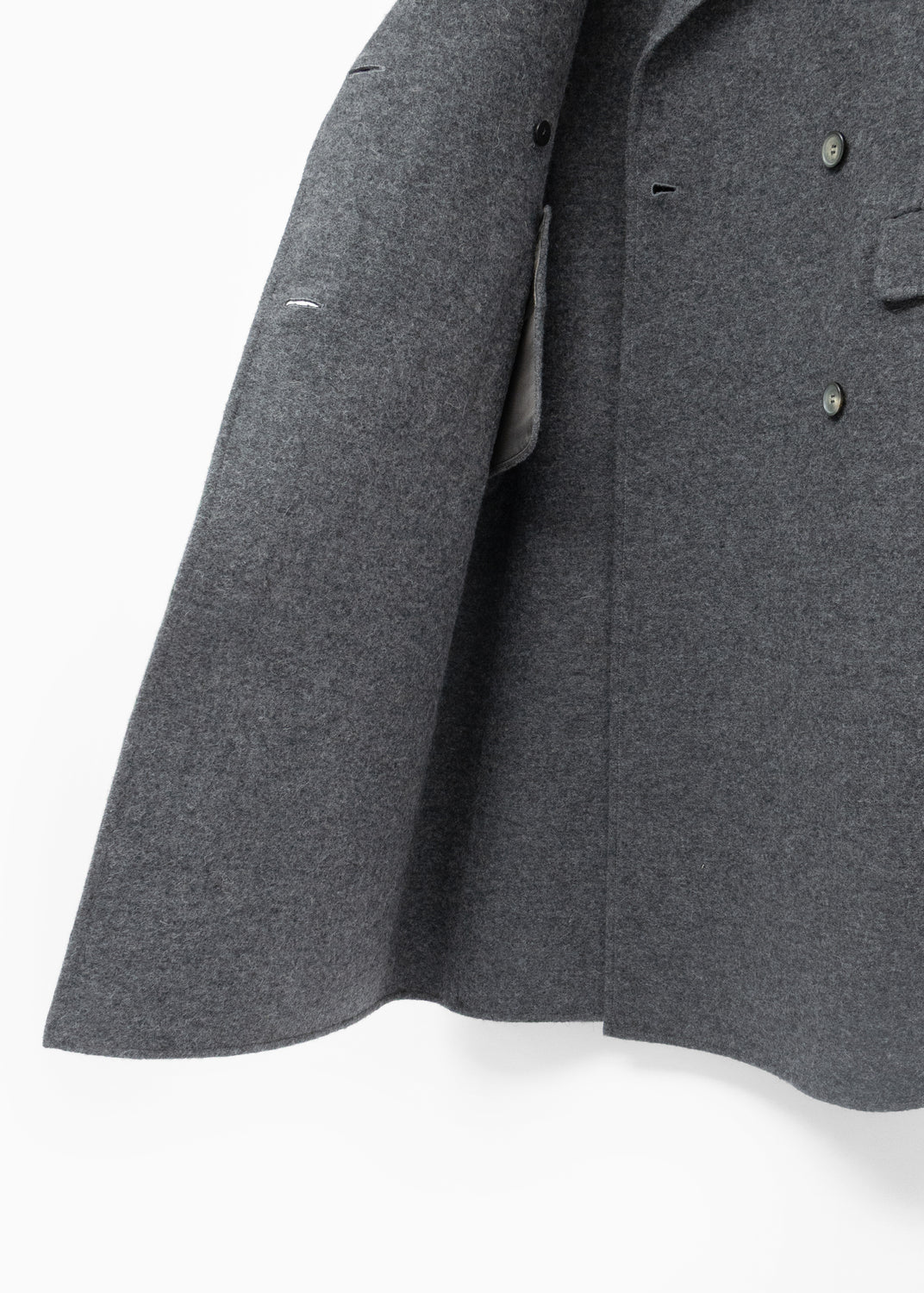 Material Double-face felted wool Composition 92% Wool, 8% Polyamide Handle Soft, full, textured, weighty Weight Heavyweight Transparency No Stretch No Sheen No Sleeve lining Viscose lining Composition 100% Viscose InscriptionsLabel with size indication