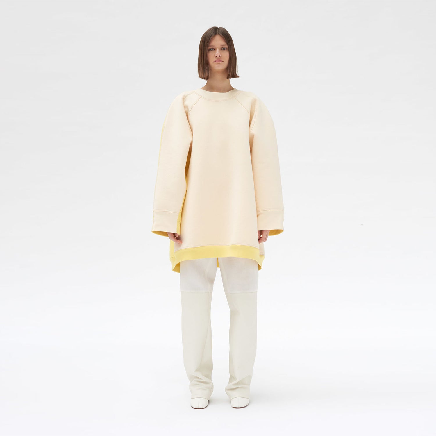 Cut from heavyweight cotton jersey, this oversize sweater takes the familiar sweatshirt and turns it into something almost sculptural.