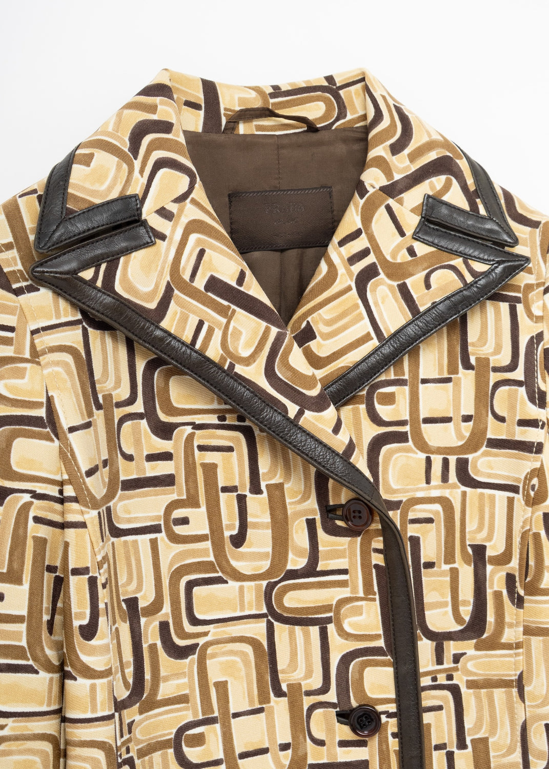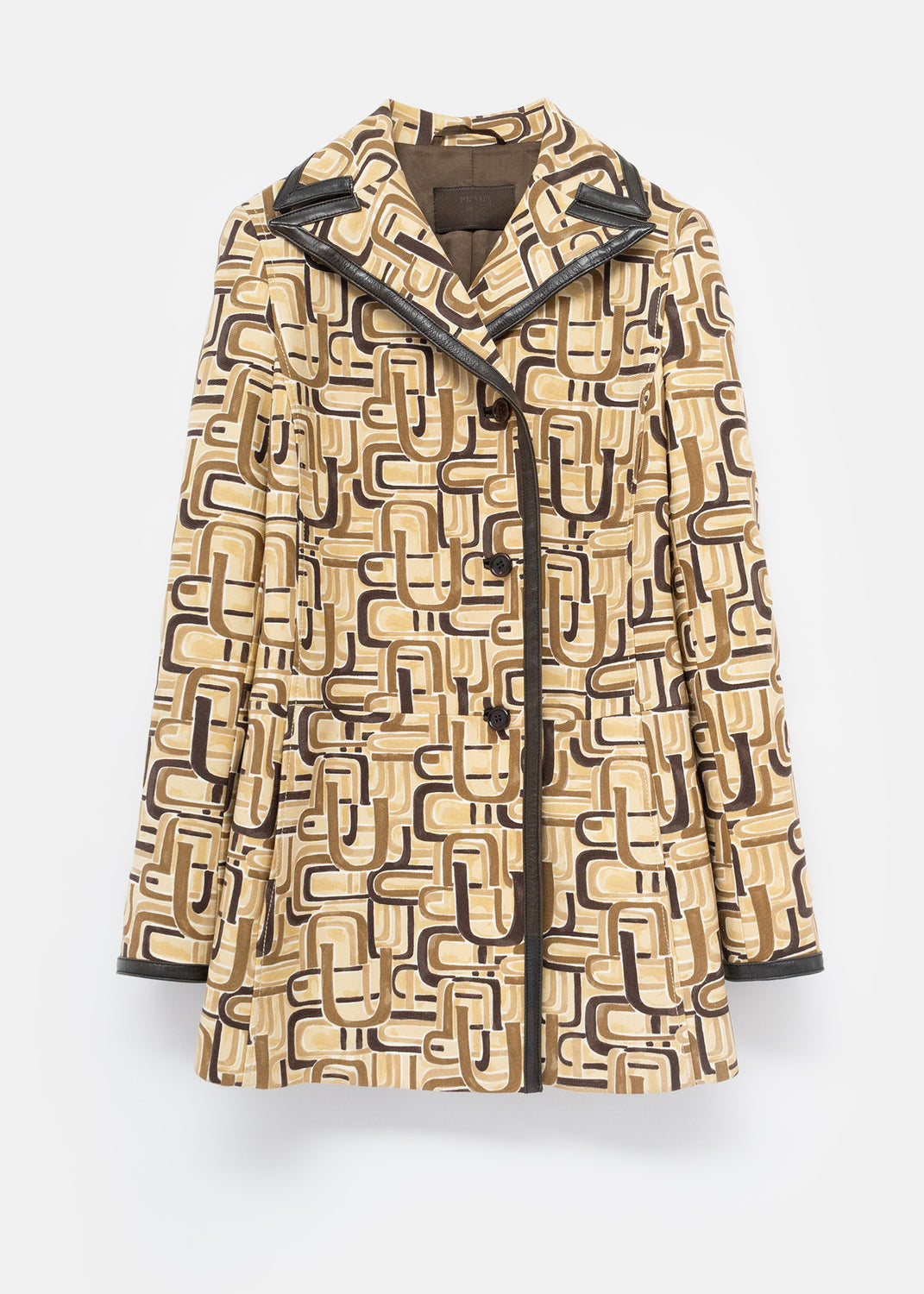 The coat is a study in minimal interference: instead of reworking the garment, Prada lets the print do the work.