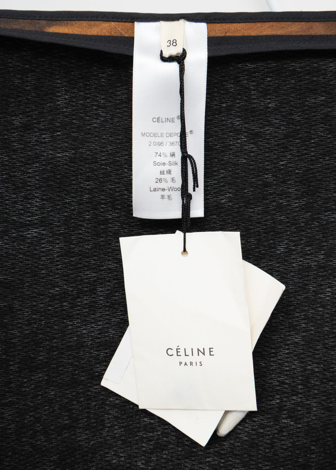 Material Printed wool-silk Composition 74% Silk, 26% Wool Handle Smooth, pliant, flat Weight Midweight Transparency No Stretch No Sheen No Lining Fuzzy woven interlining Composition Unspecified InscriptionsLabel marked "CÉLINE"