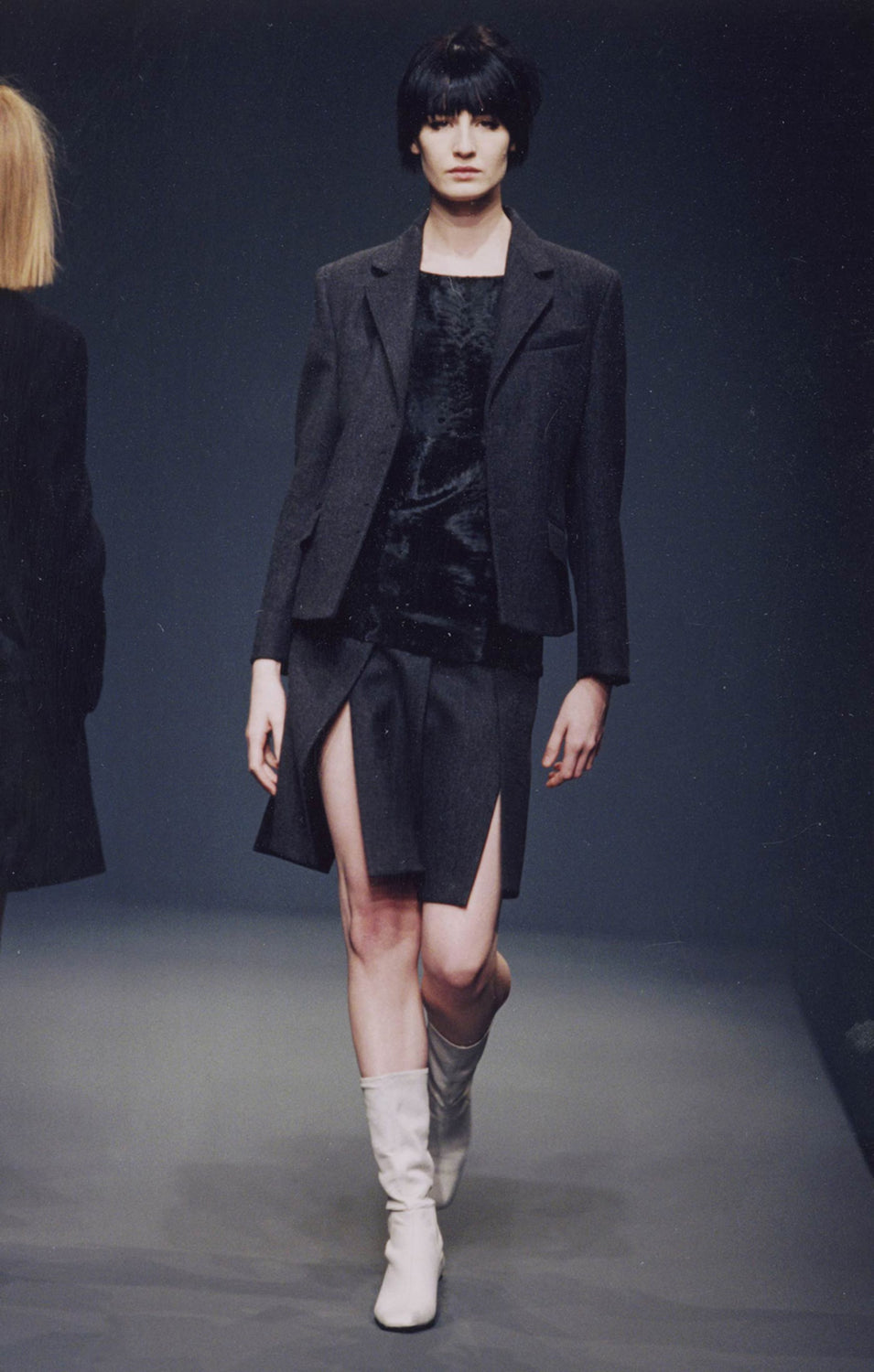 Model Erin O'Connor walks the Prada Fall/Winter 1998 womenswear show in Milan. Image via Pradasphere