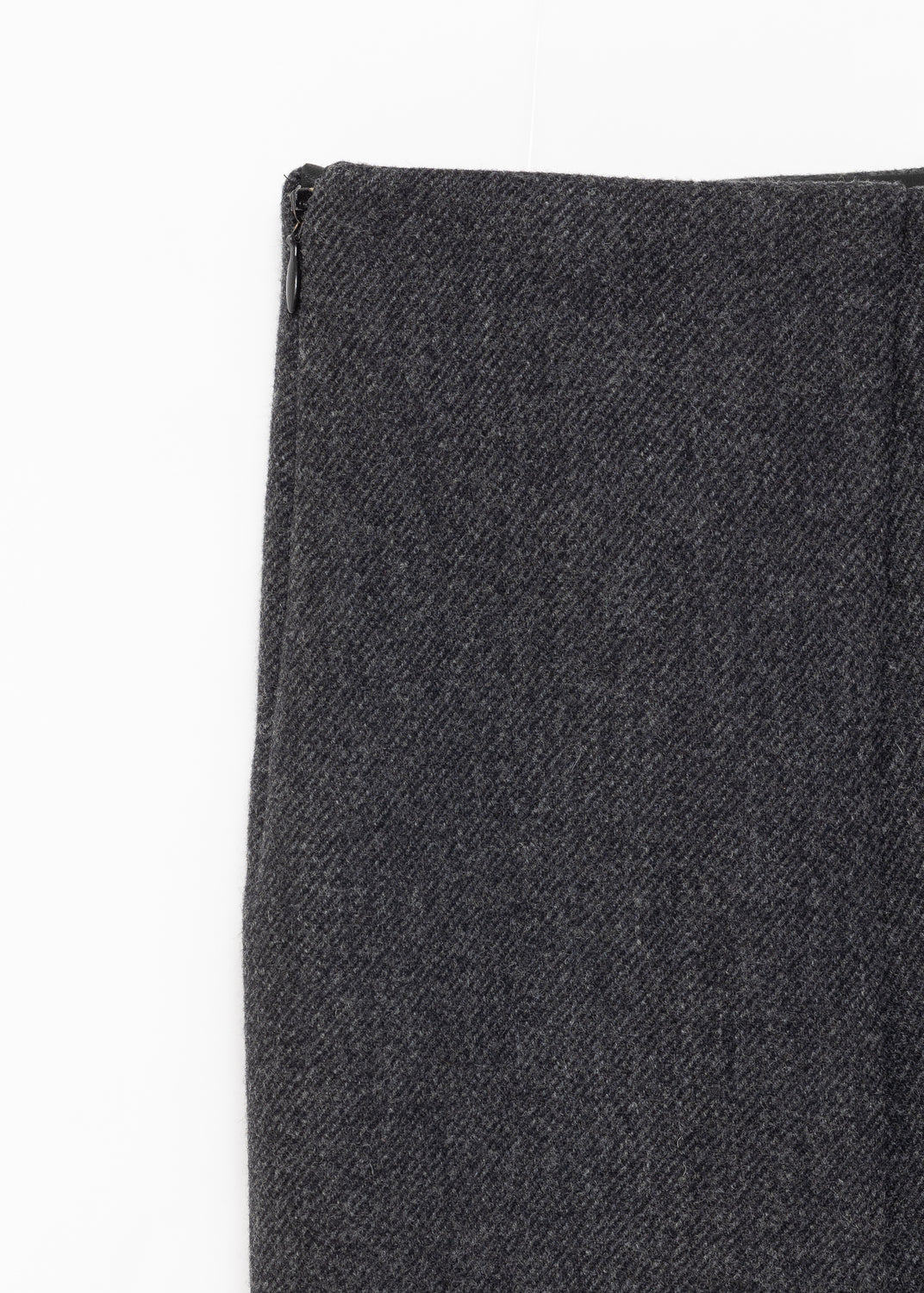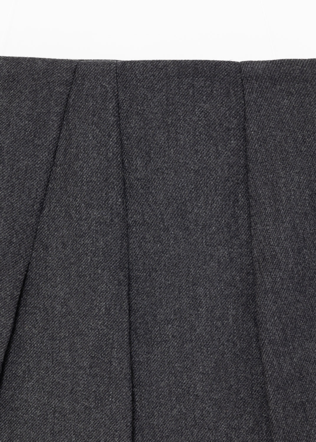 For Prada’s Fall/Winter 1998, minimalist silhouettes were pushed into futuristic territory through sharp geometry. Skirts were cut at the knee, some had seams split and basted together, and on others, pleats were sliced apart. The latter included this one in grey wool gabardine.
