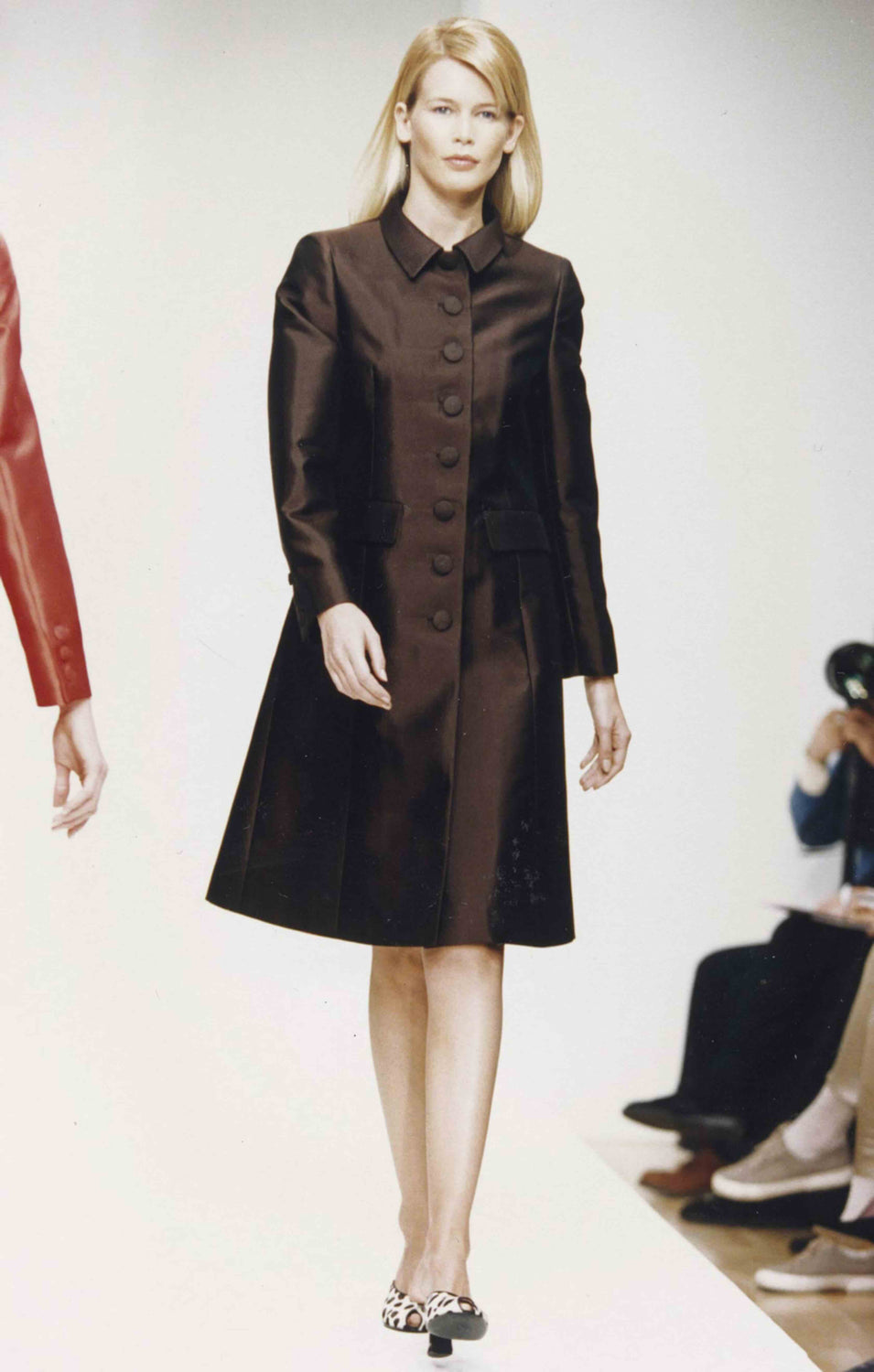 Model Claudia Schiffer walks the Prada Fall/Winter 1995 womenswear show in Milan. Image via Pradasphere
