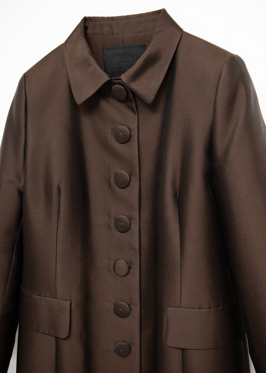 Item type Coat Size IT40 / S Accession PRA100112 Design house Prada Designer Miuccia Prada, (Italian, 1949–) Collection Fall/Winter 1995 Material Wool-silk taffeta Place of origin Italy