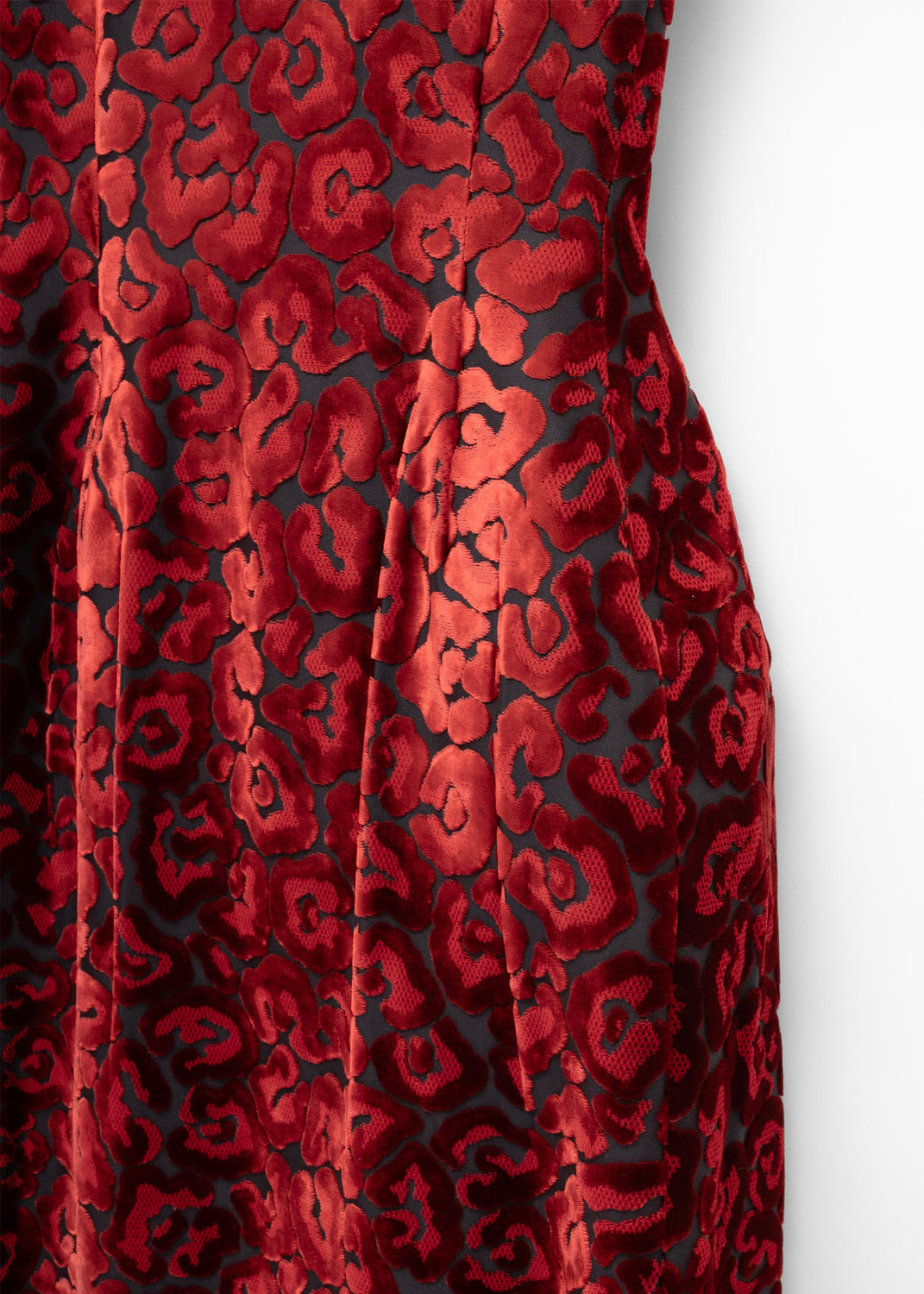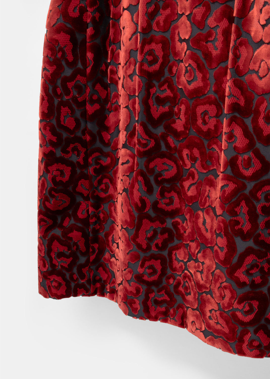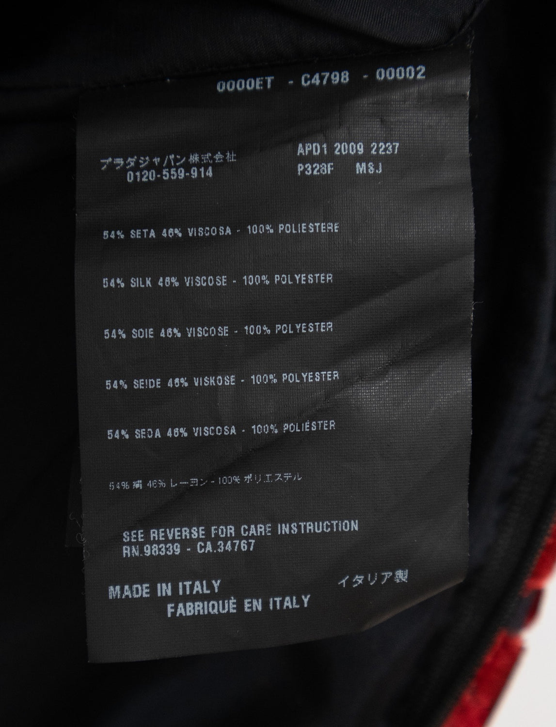 Material Rosette-motif velvet jacquard Composition 54% Silk, 46% Viscose Handle Soft, fuzzy, thick, weighty Weight Midweight Transparency No Stretch No Sheen No Lining Polyester lining Composition 100% Polyester InscriptionsLabel marked "PRADA Made in Italy 40"