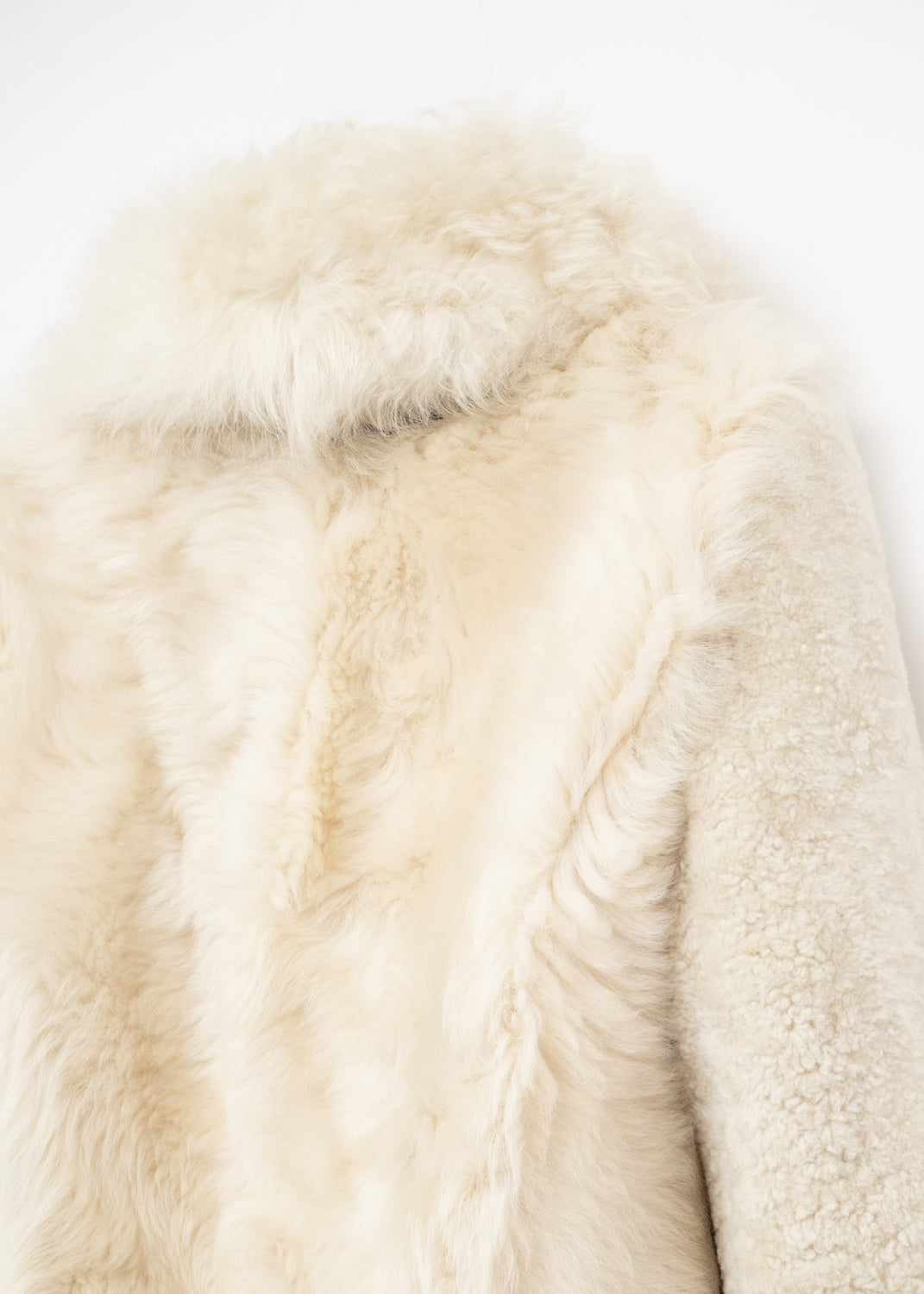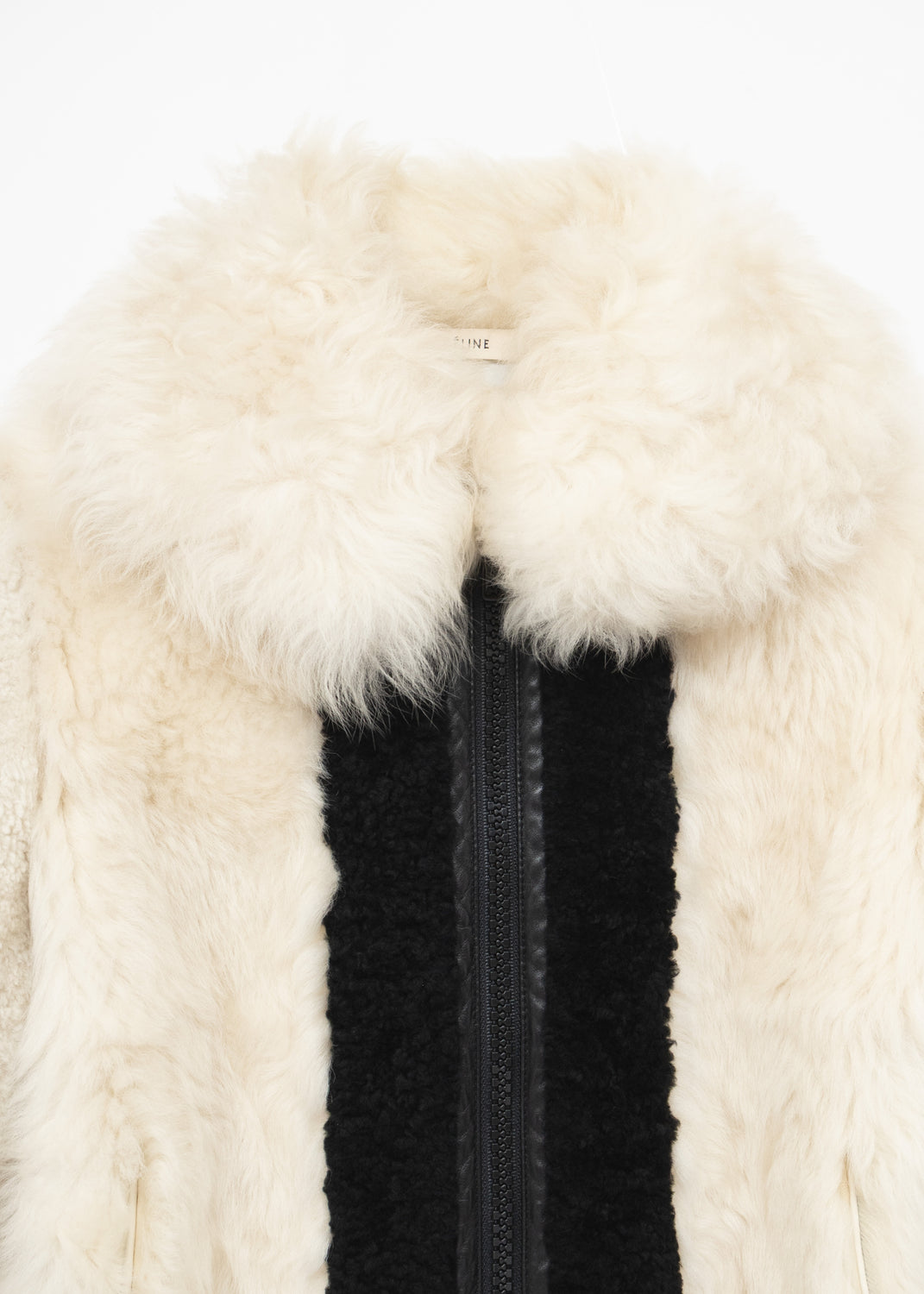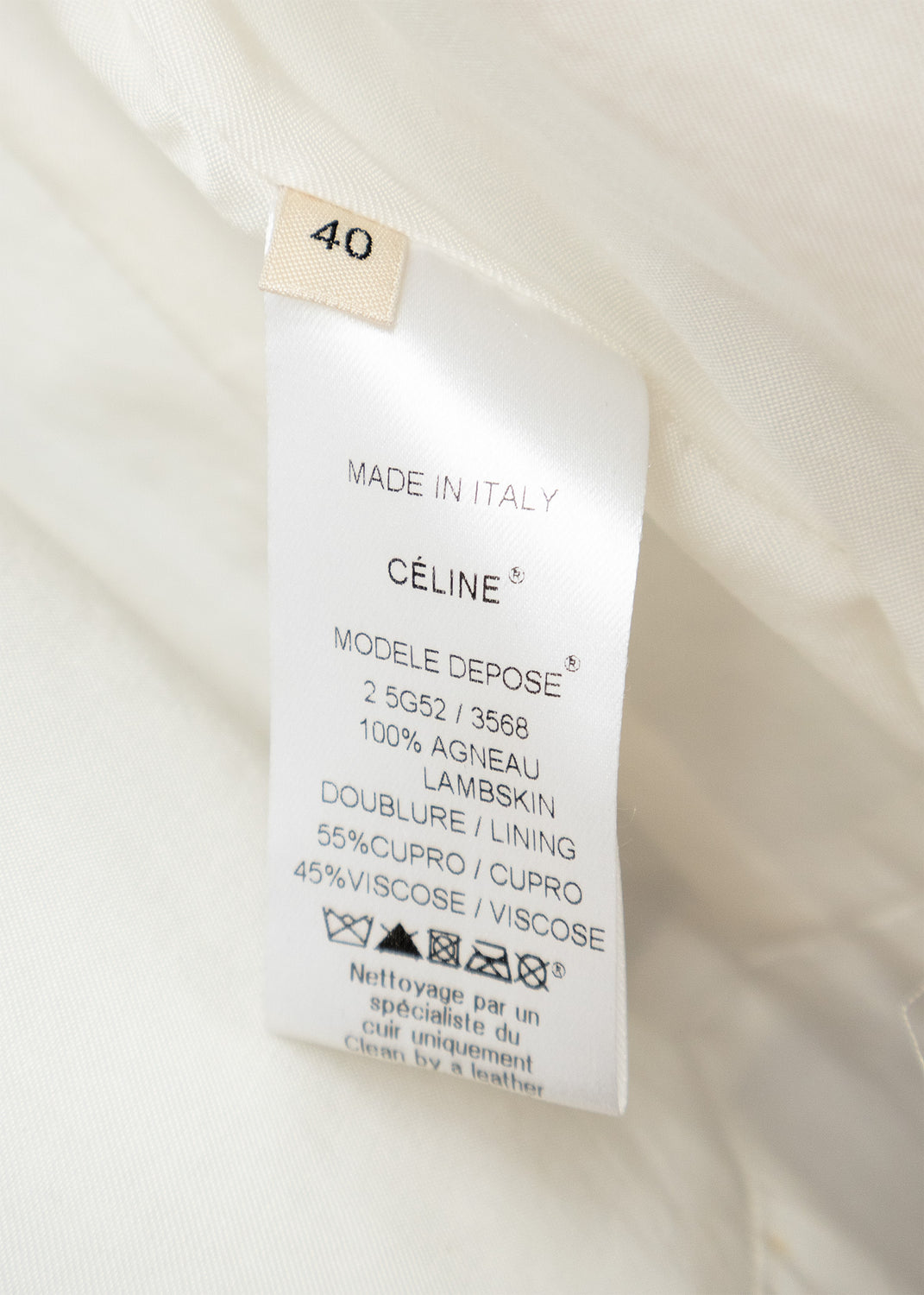 Material Lambskin shearling Composition 100% Lambskin Handle Soft, supply, hairy Weight Midweight Transparency No Stretch No Sheen No Lining Cupro-viscose blend Composition 55% Cupro, 45% Viscose InscriptionsLabel marked "CÉLINE"