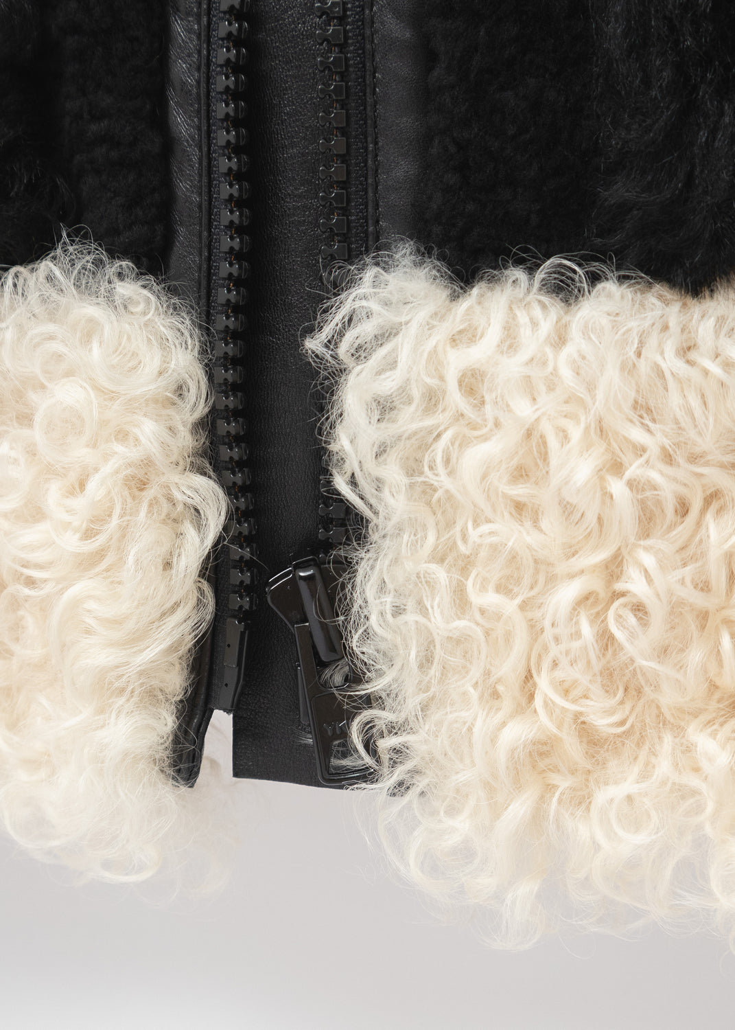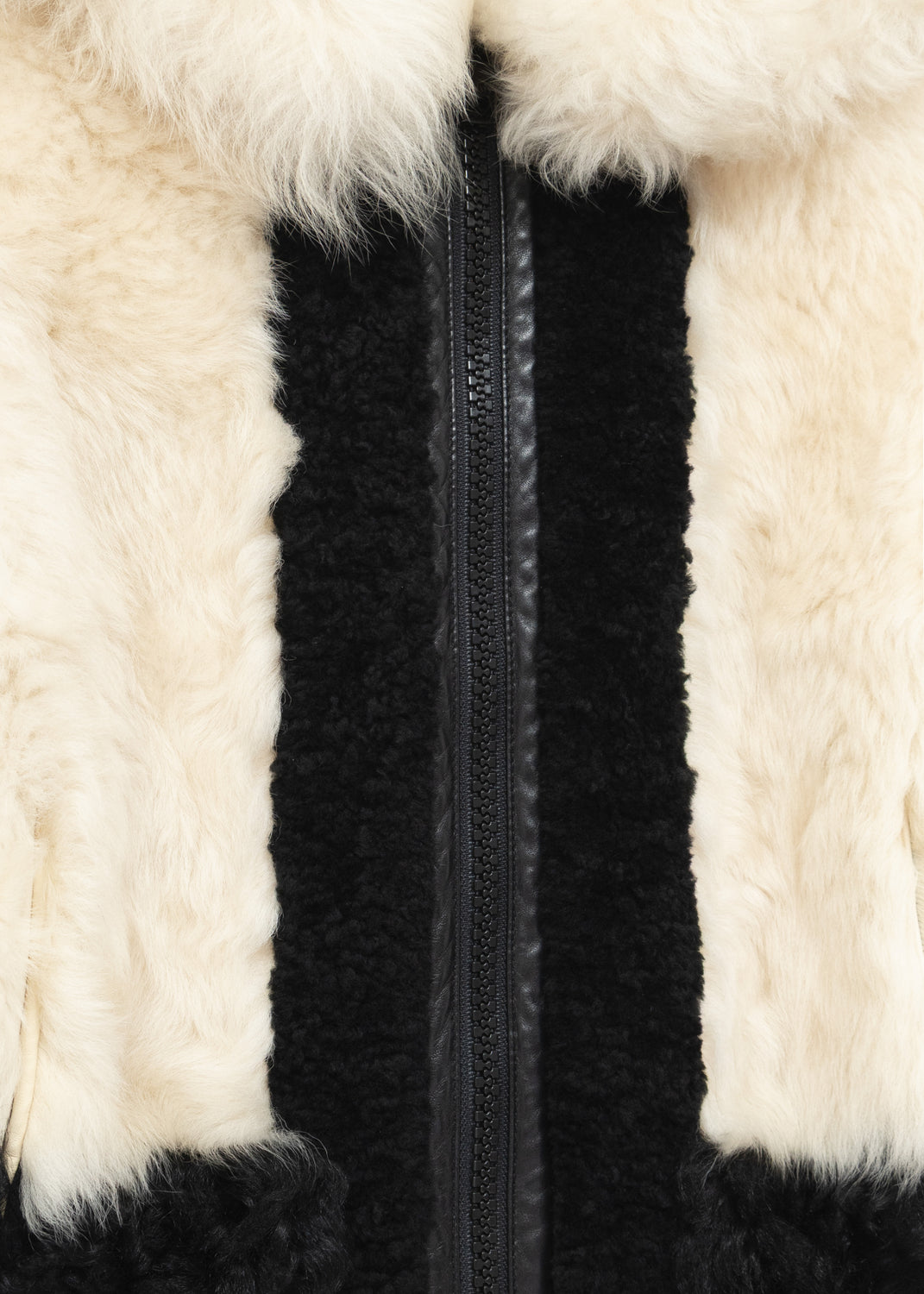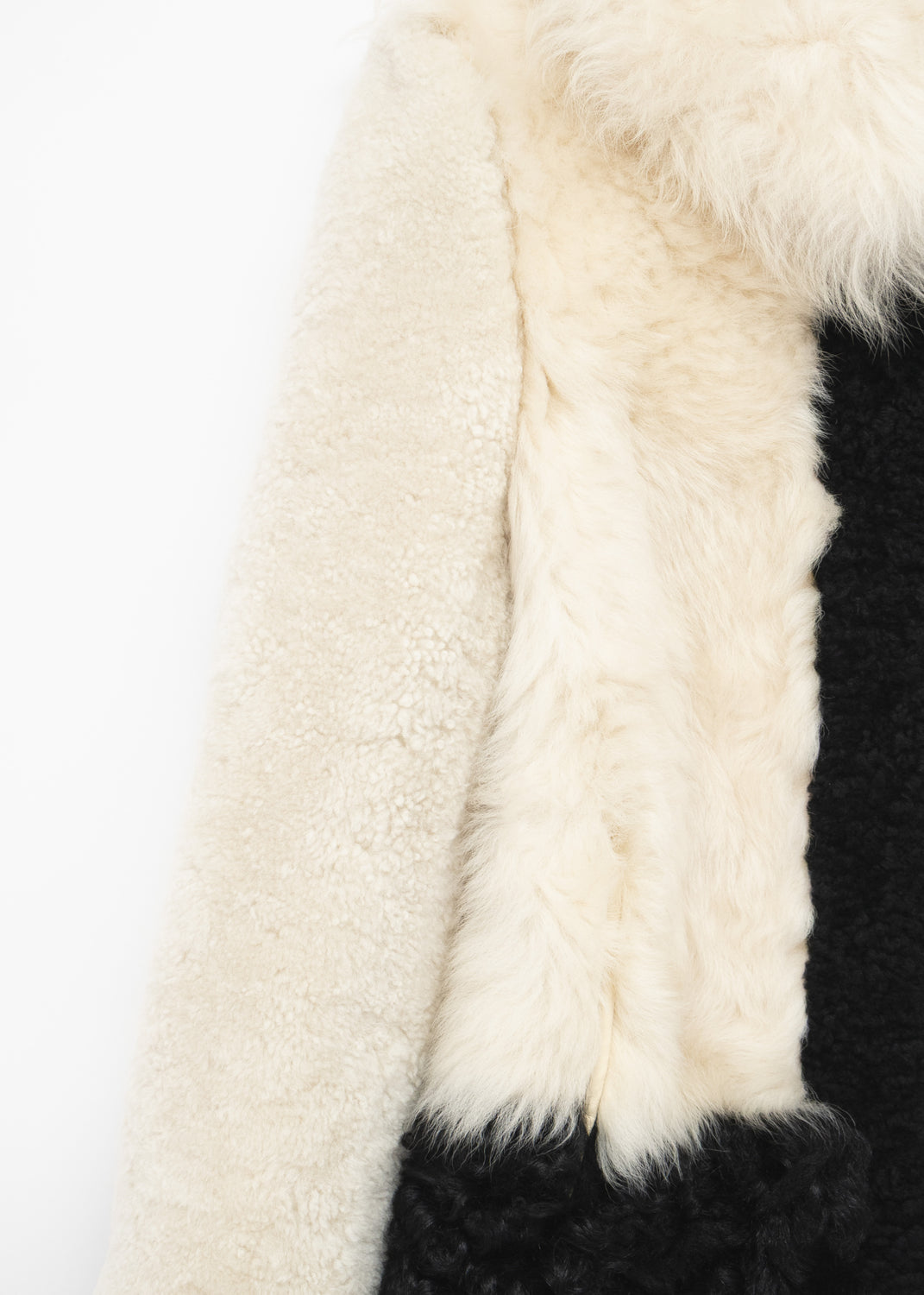Material Lambskin shearling Composition 100% Lambskin Handle Soft, supply, hairy Weight Midweight Transparency No Stretch No Sheen No Lining Cupro-viscose blend Composition 55% Cupro, 45% Viscose InscriptionsLabel marked "CÉLINE"